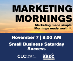 Aitkin County is a watch party location for the Small Business Development Center (SBDC) Marketing Mornings virtual training sessions.